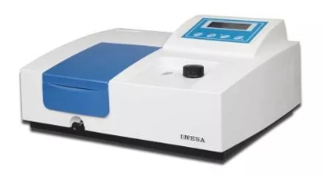 紫外可见光谱仪用来测量待测物质对可见光或紫外光(200~760nm)的吸光度并进行定量分析的仪器。可以测定核酸和蛋白的浓度,也可以测定细菌细胞密度,紫外分光光度计又可分为单光束,假双光束,双光束。它们的用途又有区别。